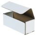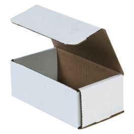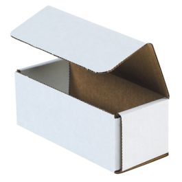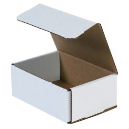 These small shipping boxes are available in several hundred different stock sizes. Each box size is listed according to inside dimensions with the length dimension listed first for ease of shopping. Mailers are packed 50 pieces to a bundle and are secured and banded together for parcel delivery to your home or place of business. Our corrugated mailers are strong and reliable for shipping products via parcel and mail delivery. Corrugated mailers are manufactured to accommodate both lightweight and medium weight products. Robust on the edges and corners, each mailing box uses double layers of corrugation on four sides for added cushioning and protection. Mailing boxes are suited for shipping an wide array of different type products, such as small jewelry boxes that may not be strong enough to ship via mail service. These small boxes can be used as an outer shipping box for chipboard cartons that are often used for cosmetics and other sundries. These white mailing boxes are economical to purchase and inexpensive to ship. You may want to shop all of our other style boxes for sale. Just hover over the cardboard boxes menu at the top of the page for where to buy boxes.